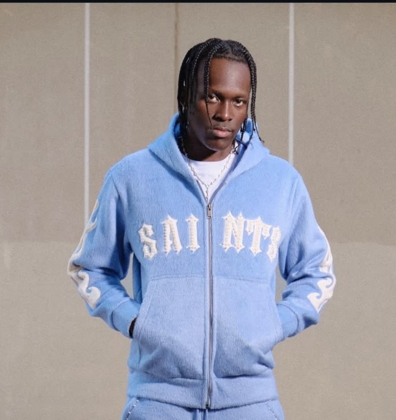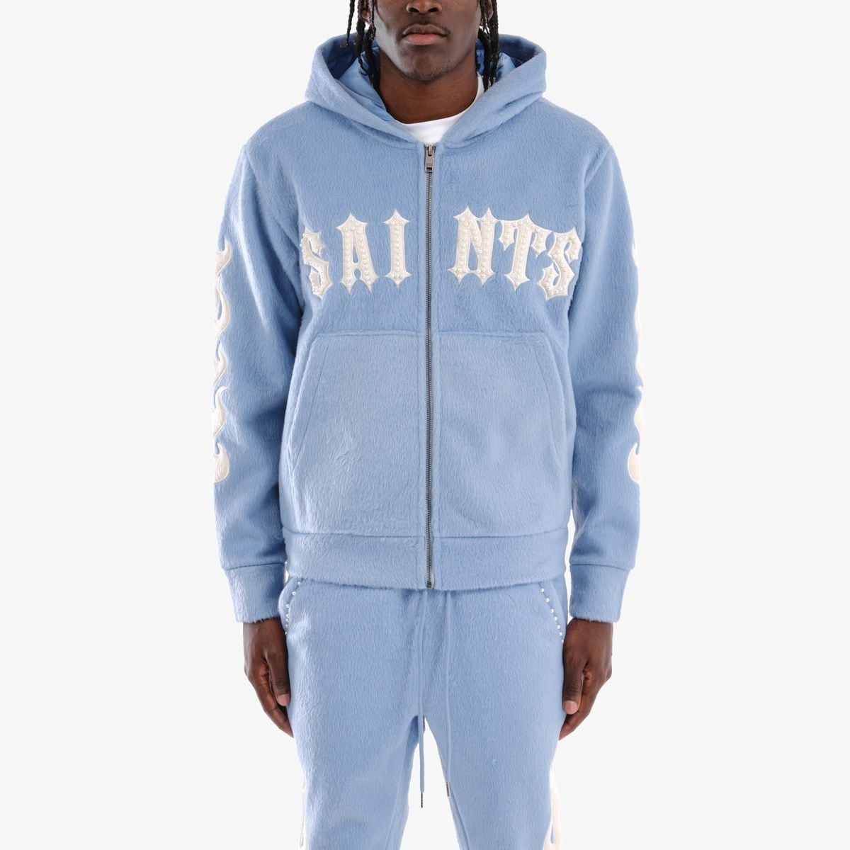 COPPER RIVET SAINTS MOHAIR PEARL EMBROIDERY ZIP HOODIE sky